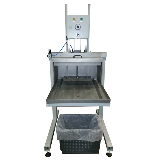 De slib wordt in een korf met filterzak opgevangen. De korf wordt in de pers gezet; het deksel gesloten en via de pneumatische schakelaar wordt het persdeksel door de luchtcylinders op de slib gedrukt.