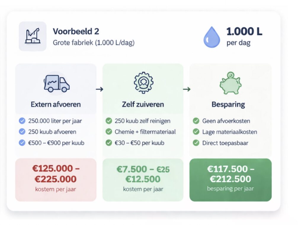 Afhankelijk van uw volume (liters per dag) zien wij in de metaalindustrie en bij vergelijkbare bedrijven vaak een ROI van 9 tot 12 maanden.